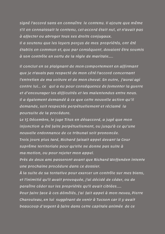 À la suite de sa tentative pour exercer un contrôle sur mes biens,
