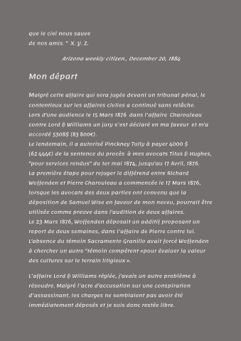 L’affaire Lord & Williams réglée, j'avais un autre problème à