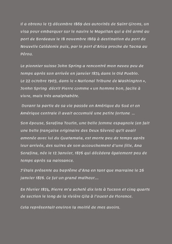 En Février 1874, Pierre m’a acheté dix lots à Tucson et cinq quarts
