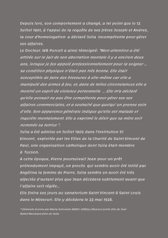 Elle finira ses jours au sanatorium Saint Vincent à Saint Louis