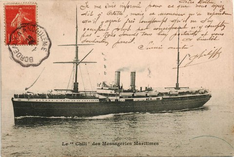 J'embarque donc avec mon mari Michel, pour le Pérou, sur le navire Le Chili le 7 juillet 1849.