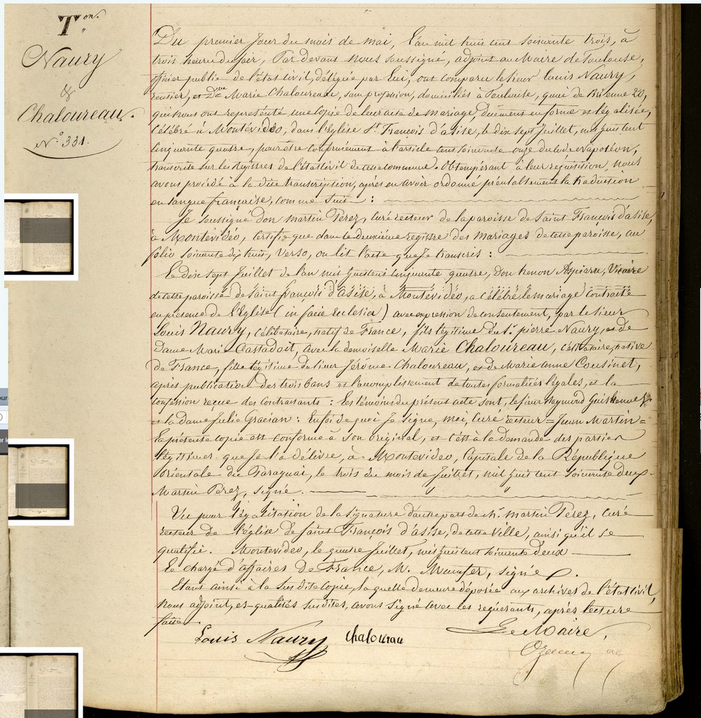 Elle se marie le 17 juillet 1854 à Montevideo avec Louis Naury, rentier. Ils auront 2 enfants, Pauline née en 1855 et Joseph né en 1857.