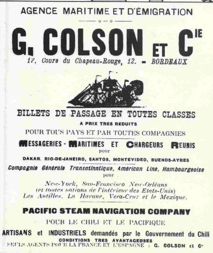 Cette année là, Paule, prend la route pour Bordeaux, le port par lequel transitent tous les migrants cherchant fortune en Amérique du Sud ou vers les Etats-Unis, incitée par ailleurs par l’agence Colson de Bordeaux qui offre des prix de transport maritimes défiant toute concurrence… et avec l'espoir d'une vie meilleure et de faire fortune.....