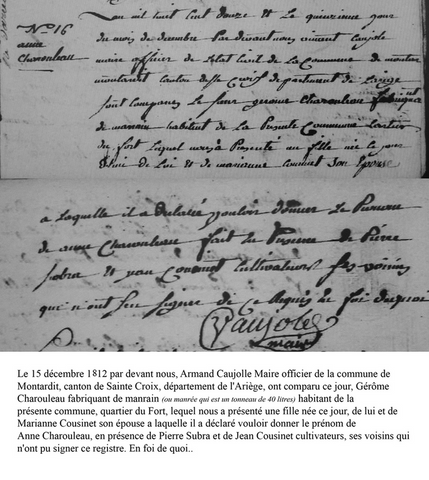 Je suis née le 15 décembre 1812 au hameau du Fort dans la commune de Montardit en Ariège et je décède à Toulouse le 3 avril 1898.