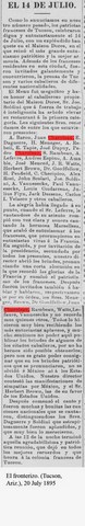 Jean était bon vivant, participant aux festivités locales. Le 14 juillet 1895, lors d'une soirée de commémoration de la fête nationale française, il prononcera un discours et chantera la Marseillaise…....
