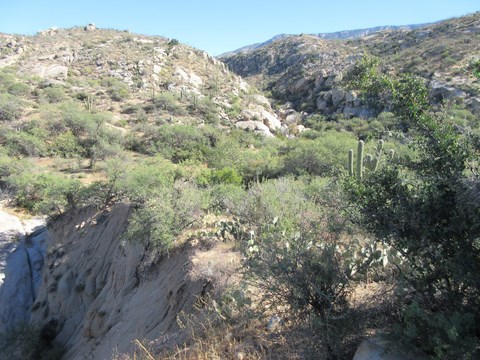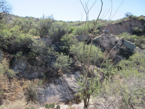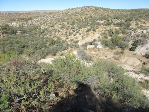 Les conditions climatiques étant difficiles dans cette région, et, en particulier le manque d’eau, Pierre a créé des réservoirs pour ses plantations et son bétail. (ci contre, restes de barrage et bassins aujourd'hui asséchés photos Bob Simpson)