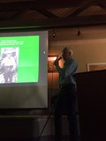 En photo, Bob présentant la vie de Pierre Charouleau lors d’une conférence à la société Historique de Tucson