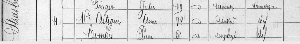 J’y suis recensée en 1886 en tant que rentière, puis en 1891 sous le nom de Veuve Artigue .