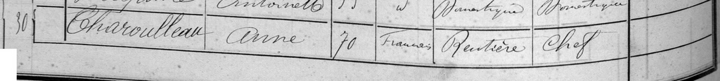 Arrivée en 1883, à l'âge de 71 ans, je décède le 3 avril à 14 heures. J'avais 86 ans.